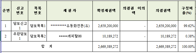 [회사의 회생담보권 현황]
