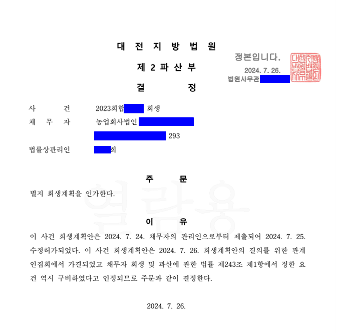 [사례] #1. 농산물가공Ⅰ폐지후 재신청 I 부인권소송 I 공장보유하며 담보권변제 I 캠코 회생기업 자금대여(DIP금융지원) I